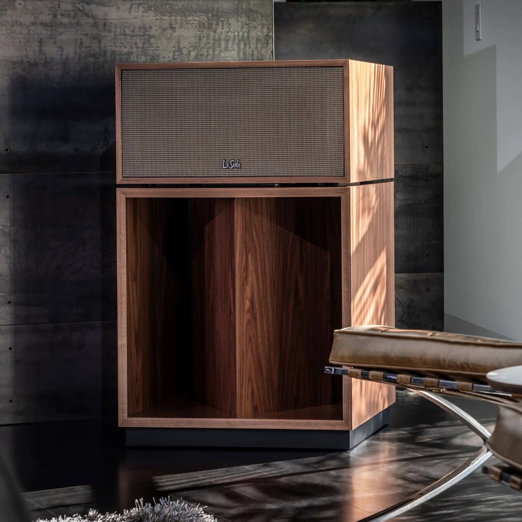 For the first time, La Scala upgrades to a patented horn loaded, vented system, maximizing efficiency, extending output, and lowering distortion – realizing the benefits of both a horn-loaded system and a bass reflex system. The K-281 12” woofer with folded horn, sits comfortably in a new enclosure, producing richer and more robust bass from any room placement.