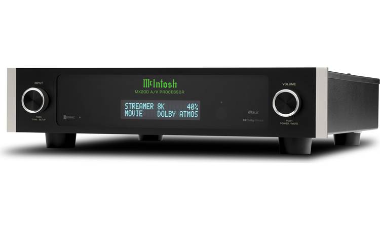 Elevate your home theater experience with the MX200. With a sleek design, it still includes many signature McIntosh design cues including a black glass front panel, an illuminated McIntosh logo, rotary control knobs, and a familiar form factor highlighted by silver trim. Contact your local dealer to learn more about the powerful MX200 A/V Processor.